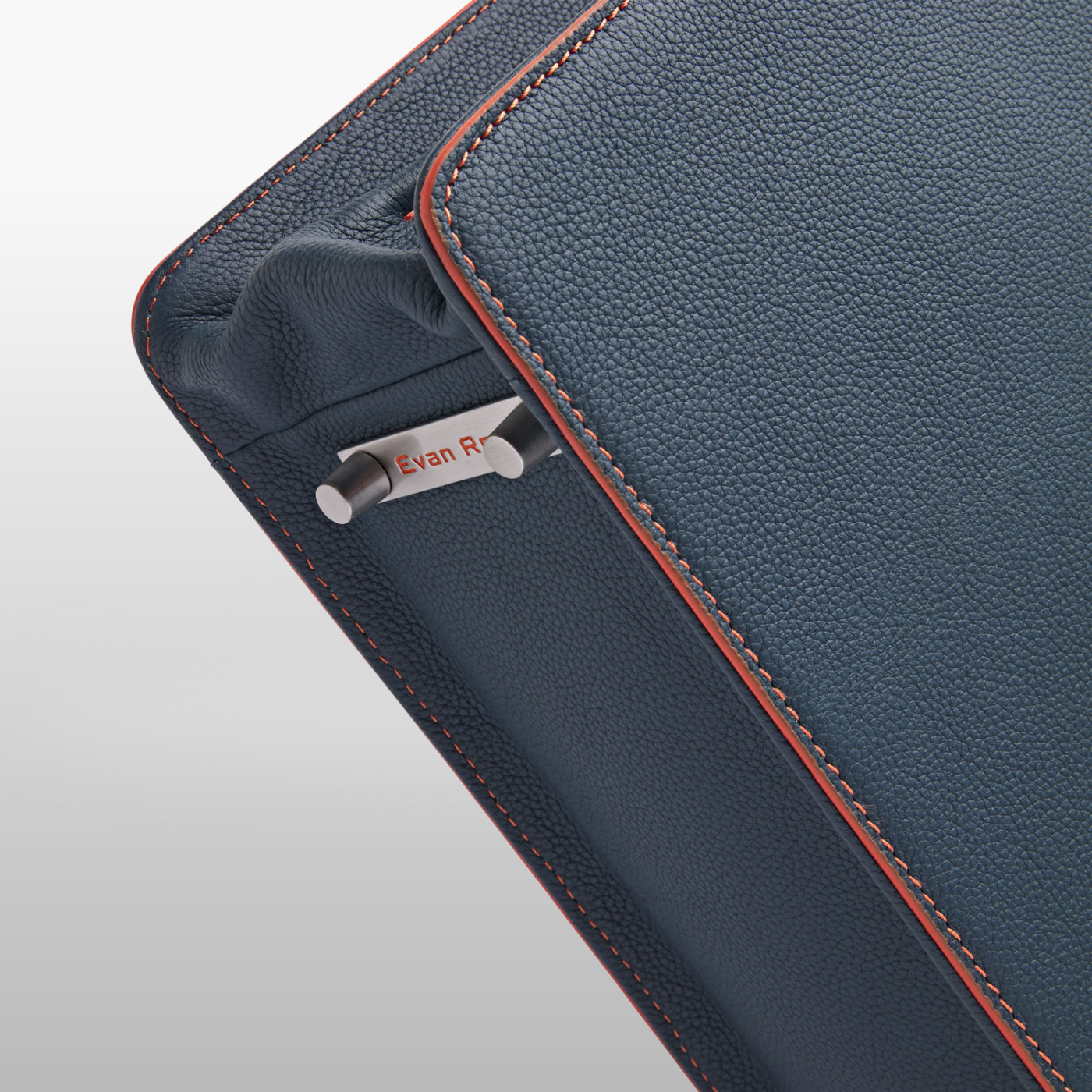 The Amsterdam briefcase features a dual-zip luggage sleeve, allowing you to effortlessly secure it to your trolley